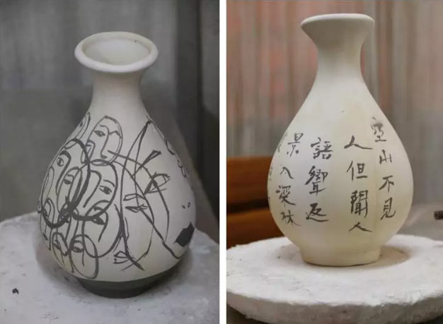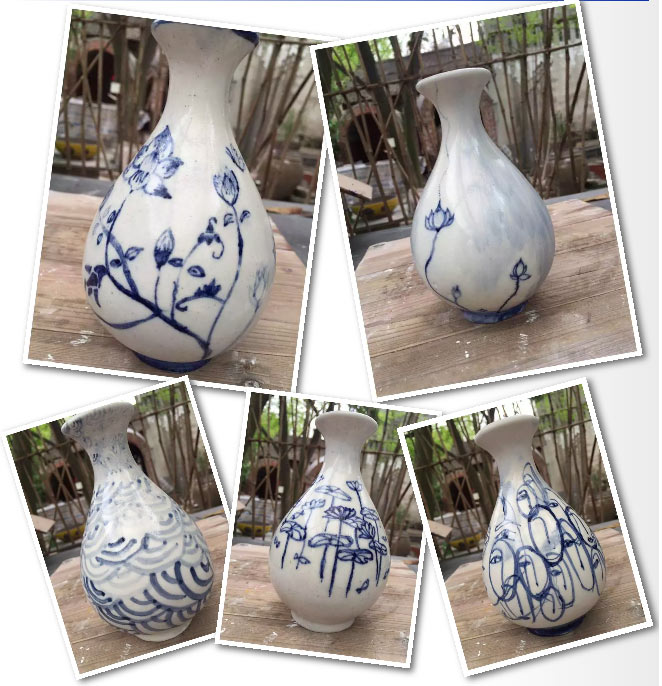 學生青花瓷作品燒制前