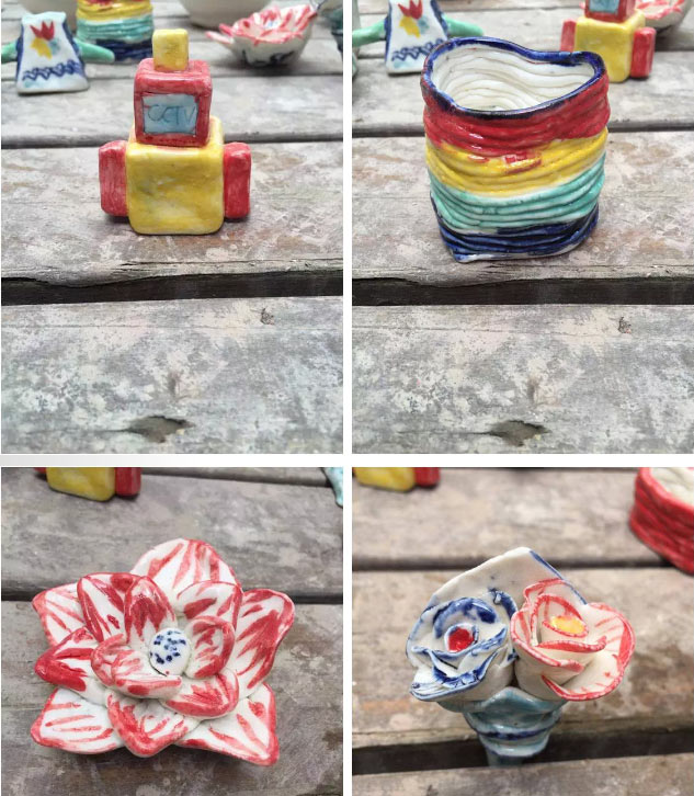當看到一個個新穎有趣的陶藝作品呈現(xiàn),學生們的臉上都綻放出了付出與收獲的笑容。