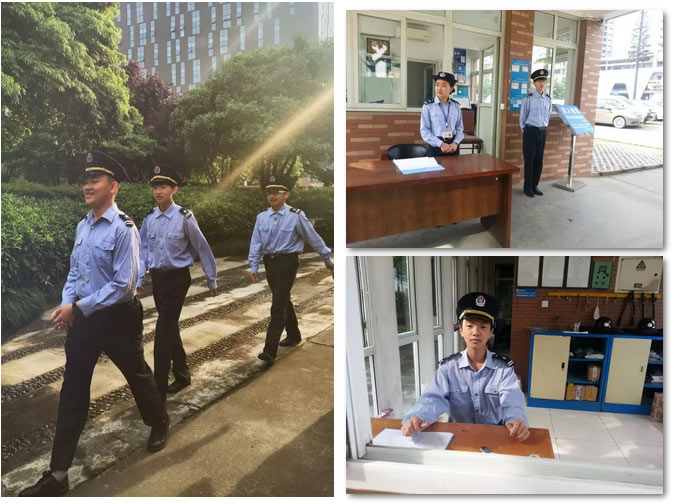 8點(diǎn),四個(gè)男孩穿著制服迎著雨后第一縷陽光亮相校園。巡邏、監(jiān)控、接待、檢查是保安們每天的工作內(nèi)容,他們每兩個(gè)小時(shí)換一次。