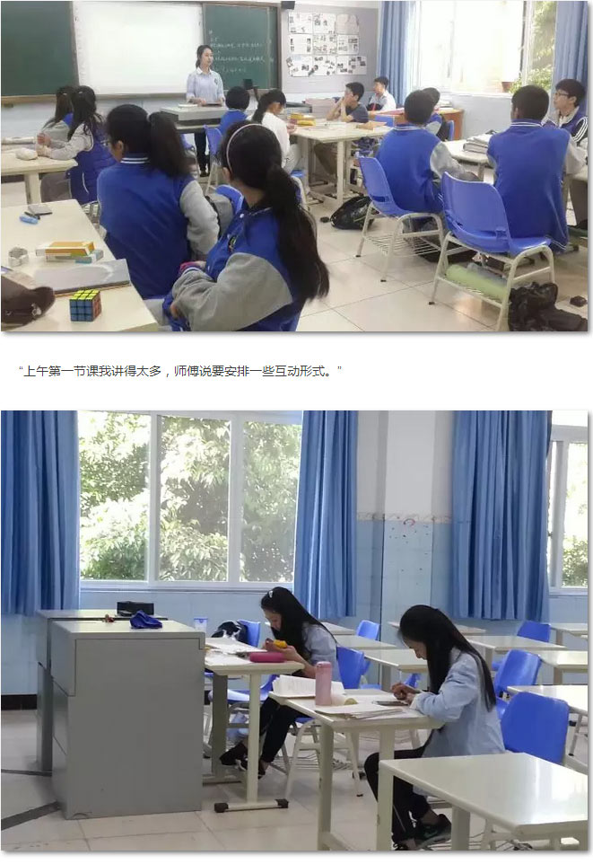 7點(diǎn)35分,中文助教孫妍睿同學(xué)已到教室。今天有一節(jié)早自習(xí),三節(jié)中文課需要和比自己小或大的孩子在一起。給比自己小的孩子要安排《童年》探究,比自己大的孩子要安排《詩經(jīng)》探究。