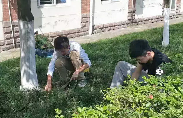 但對(duì)于修剪工作的孩子們來講,眼里只有旁逸的枝條。對(duì)于除草工作的孩子來講,手上只有各種野草。上午的露水打濕了鞋褲,下午的驕陽曬黑了臉龐。