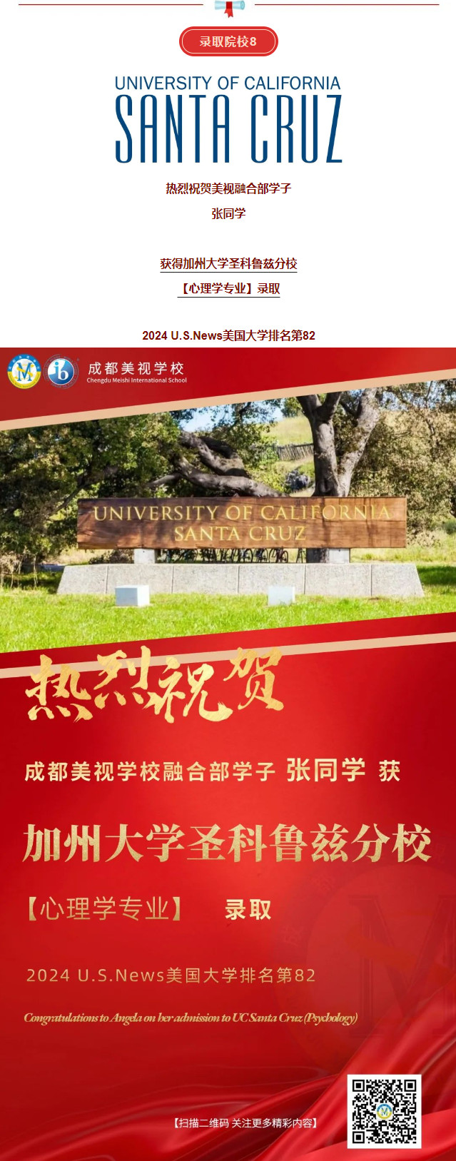 加州大學(xué)圣克魯茲分校(University of California Santa Cruz)創(chuàng)立于1965年 ,是一所頂尖大學(xué)。是加州大學(xué)系統(tǒng)十個校區(qū)之中最有名望的學(xué)府之一。加州大學(xué)圣克魯茲分校近來被《美國新聞與世界報道》評為“全國最佳大學(xué)”第75位。諸多頗具聲望的雜志將該校的工程學(xué)專業(yè)博士學(xué)位評為全美第一,國際金融專業(yè)全球第7,地球科學(xué)專業(yè)全球第18。