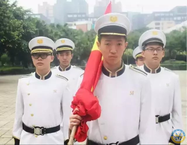如果你在入學前嚴酷的新生軍訓中顯示出過硬的軍事素養(yǎng),正步、齊步、立定、軍姿……各項動作要領都堪為表率和模范,個中佼佼者便極有可能被閱生無數(shù)的教官和德育處老師選中,從此肩挑“國旗隊員”之責。