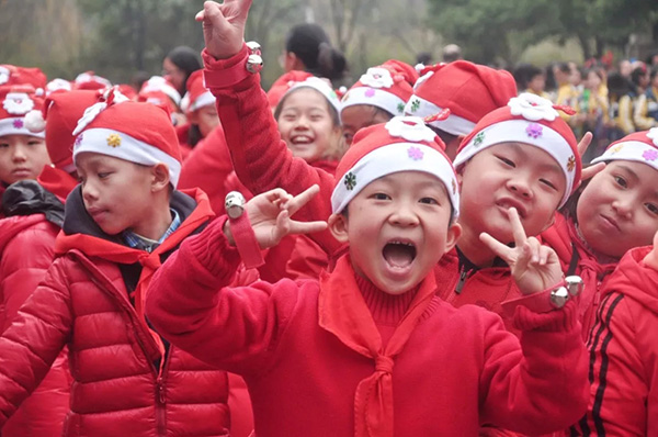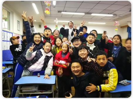 最后的環(huán)節(jié)更是令人激動(dòng)不已:由外教Mr. Spencer裝扮的Santa Claus會(huì)從全校19個(gè)班里,每次抽取出2--3個(gè)幸運(yùn)班級(jí),并派出“圣誕小精靈們”為這些幸運(yùn)班級(jí)的孩子們送去甜蜜的糖果。小小的糖果,吃在嘴里,一直甜到了心坎兒里。