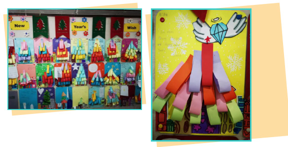 再來(lái)看看二年級(jí)的乖娃娃們做的漂亮的英文賀卡。有的說(shuō):“希望我明年成績(jī)更優(yōu)秀”;也有的說(shuō):“祝愿大家新的一年里身體更健康”;還有的說(shuō):“希望圣誕老人能送我一只可愛(ài)的寵物狗狗”……字里行間寄托的是對(duì)新年的美好祝愿