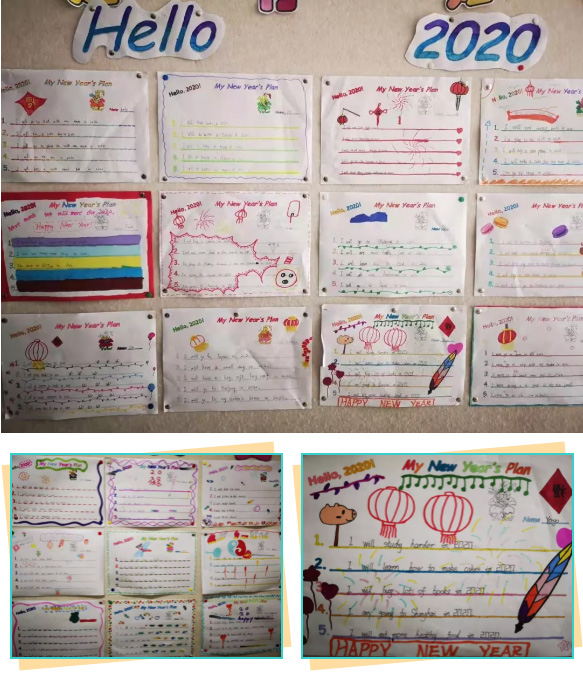 五年級(jí)孩子們的新年小練筆也很有特色。他們?cè)谟⒄Z(yǔ)課上制定了新年學(xué)習(xí)和生活的計(jì)劃。一句“Hello,2020”,在輕松愉快的氛圍里迎接新的一年的機(jī)遇與挑戰(zhàn)。相信在新的一年里我們的乖娃娃會(huì)更上一層樓。