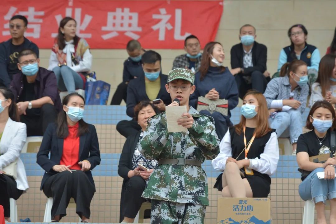 接下來(lái),來(lái)自高一二班的田勁夫同學(xué)和來(lái)自初一四班韓其言同學(xué)的家長(zhǎng)分別作為優(yōu)秀學(xué)員代表、家長(zhǎng)代表發(fā)言。從學(xué)生和父母的角度,表達(dá)了對(duì)本次軍訓(xùn)成果的肯定,希望在今后的學(xué)習(xí)中繼續(xù)保持軍訓(xùn)中昂揚(yáng)的斗志,挖掘自己的潛能,實(shí)現(xiàn)自己的理想,成為感恩社會(huì)、回報(bào)社會(huì)的有用之才!
