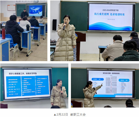 2月22日9:00,全體教職工精神飽滿地參加了2023-2024學(xué)年度下期開學(xué)工作會(huì),學(xué)校黨支部書記、校長宋偉作了《踐行成長藍(lán)圖、追求魔創(chuàng)績效》主題講話,宋校長總結(jié)回顧了上學(xué)期的學(xué)校工作,描繪了新學(xué)期的美好愿景,鼓勵(lì)老師們齊心協(xié)力,共繪學(xué)校發(fā)展藍(lán)圖。