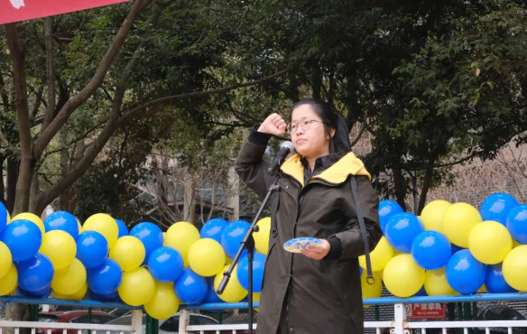 ▲物理教研組組長洪雅芳老師帶領(lǐng)教師宣誓