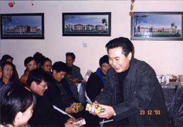 2001年12月23日晚,成都美視文化有限公司總經(jīng)理楊德明先生盛情邀請首批新教師與公司員工一起共聚晚餐,共慶圣誕。席間,楊總經(jīng)理和林華玉校長分別舉杯致詞,表達了熱情的祝福,在熱烈而溫馨的氣氛中,多才多藝的大學生們和公司同事一起盡情歌舞、游戲,并抽簽互贈禮物,互致親切問候。