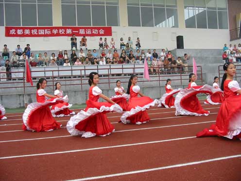校舞蹈隊表演“紅裙舞”