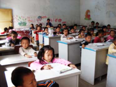 鹽井學(xué)校的學(xué)生用我校捐贈的課桌椅上課。