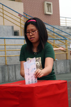 中學(xué)部各班代表為震區(qū)獻(xiàn)愛(ài)心