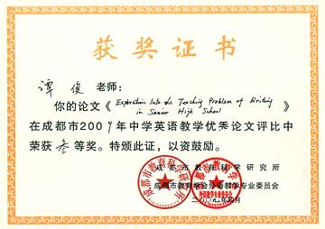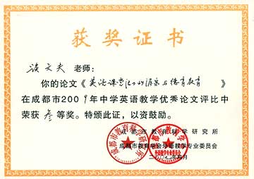 2009年中學(xué)英語教學(xué)優(yōu)秀論文評獲獎教師