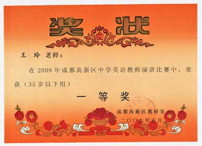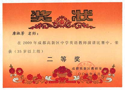 2009年成都高新區(qū)中學(xué)英語教師演講比賽獲獎(jiǎng)名單