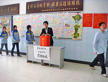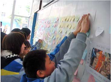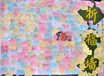 4月14日,青海玉樹發(fā)生地震的消息傳出之后,成都美視師一學(xué)校師生的心情一直沒有平靜過。16日,中學(xué)樓大廳里千名師生一張張寫滿了關(guān)心、慰問、激勵(lì)話語的卡片匯成了一面祈福墻。19日,在周一的升旗儀式上,全校師生哀思玉樹,贊歌玉樹人民的頑強(qiáng)。