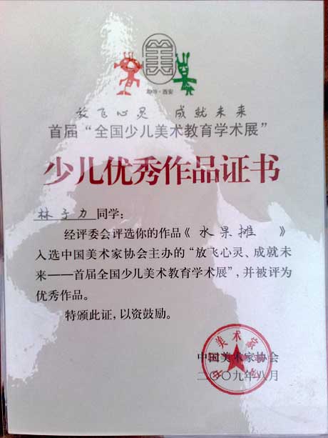 林子力同學(xué)在首屆“全國少兒美術(shù)教學(xué)學(xué)術(shù)展”評選活動中作品被評為優(yōu)秀作品