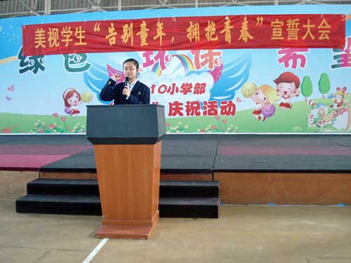 2010年6月1日,初一、初二全體同學(xué)在校體育館領(lǐng)會(huì)慶祝“六一”兒童節(jié)。中學(xué)部王嵐副校長(zhǎng)在會(huì)上發(fā)表講話以示祝賀。初二同學(xué)學(xué)生代表在會(huì)上發(fā)表了“告別童年,擁抱青春”的宣言。此外,學(xué)校還給初一、初二的同學(xué)派發(fā)了節(jié)日禮物。