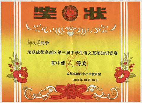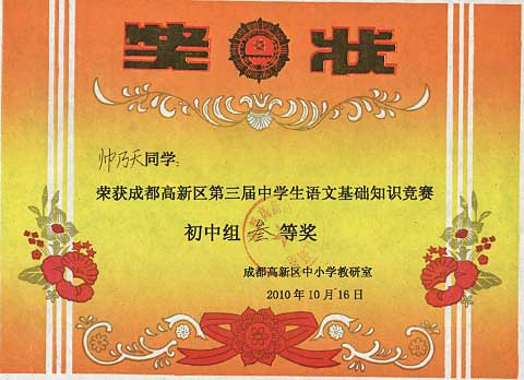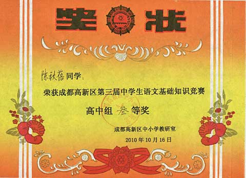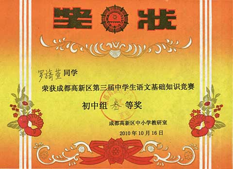 美視學子在成都高新區(qū)第三屆中學生語文基礎知識競賽中獲獎