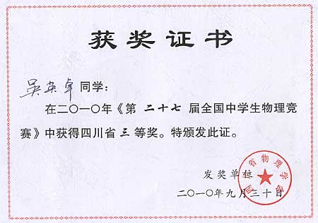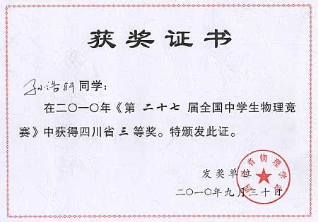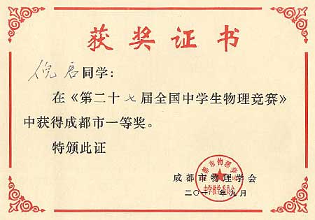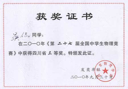 美視學子在第27屆全國中學生物理競賽中獲獎