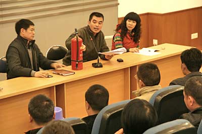 為確保學(xué)校安全,預(yù)防火災(zāi)發(fā)生,11月25日下午,我校后勤部舉行了“消防實(shí)戰(zhàn)演練”活動。先由后勤部負(fù)責(zé)人講解了有關(guān)火災(zāi)的危害和消防滅火的理論知識,然后,所有參與人員到?;@球場進(jìn)行實(shí)戰(zhàn)演練,學(xué)習(xí)并掌握使用干粉滅火器和滅火毯的技能。