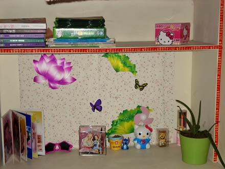 經(jīng)過師生們一個多月的努力,活動達到了預期的效果:當你走進一間間寢室的時候,往往有一種耳目一新的感覺。案頭的書籍和張貼的勵志字畫,顯示了主人的勤奮好學,積極向上;一幀全家福照片,洋溢著主人濃濃的親情和孝心;書桌一角的小飾物透出了主人的喜好和天真;一碟果盤、一面鏡子、幾枝插花、幾棵盆栽更使整個寢室平添了幾絲生活氣息和幾分優(yōu)雅情調。
