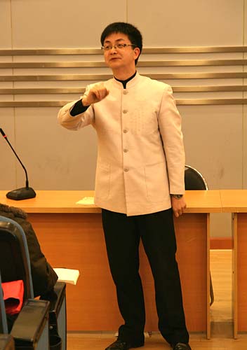 在整個講學過程中掌聲不斷,陳岳叔叔用其輕松、幽默、親切的講課方式,結(jié)合其親身的教育感受,向家長們論述了《弟子規(guī)》的精深內(nèi)涵及其在教育中的作用。他結(jié)合《弟子規(guī)》中“首孝弟、次謹信、泛愛眾、而親仁、有余力、則學文”的教育理念,從尊敬長輩、關愛朋友、提升自我等三個方面用生活范例引起家長們的共鳴。他號召家長每天指導孩子用十分鐘背《弟子規(guī)》,只要堅持下去,就會看到孩子們的巨大變化,并提出“全家誦讀,全家幸福”的觀點。在互動環(huán)節(jié)中,陳岳叔叔邀請家長們大聲朗讀《弟子規(guī)》,用心感受家庭教育給孩子們帶來的影響,并希望家長們手牽手,用心去珍愛身邊的每一個人;有的家長邊提問邊記錄,與陳岳叔叔共同交流教育孩子的心得,在互動的熱烈氣氛中,陳岳叔叔強調(diào)指出,“學校教育、家庭教育最終都要變成孩子的自我教育,這才是成功的教育。”這一教育理念也得到了很多家長的認同。在結(jié)束時,陳岳與家長們拍照留念,并派送了部分《弟子規(guī)》給家長,他希望每一個孩子都能健康、快樂的成長。