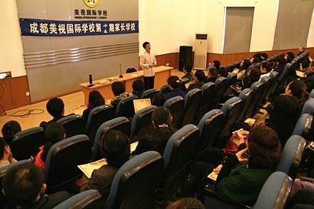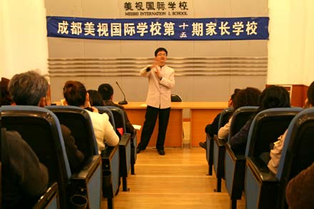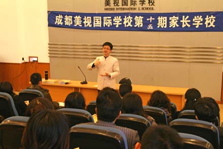 12月3日,我校中學部舉辦了第十五期“家長學校”,并邀請到了成都電視臺著名少兒頻道的總監(jiān)、國學啟蒙教育的倡導者“陳岳叔叔”為初二年級的學生家長作專題講座。