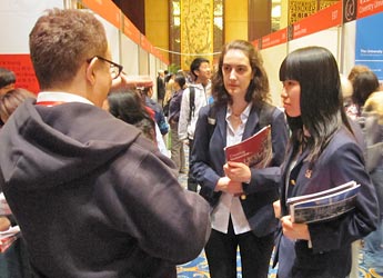 2011年10月27日,我校國際項目部11、12年級學(xué)生到成都香格里拉大酒店參加2011年中國國際教育展。通過與全球多所大學(xué)代表的面對面交流,同學(xué)們進一步了解并學(xué)習(xí)到申請國外大學(xué)的條件及要求。