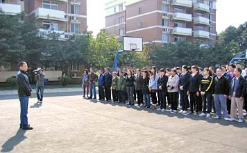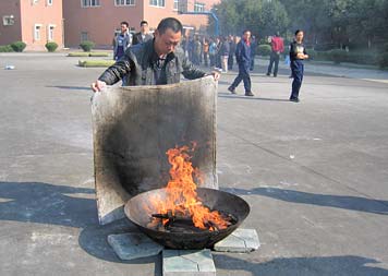 2011年11月9日下午,我校后勤部舉行了“消防實戰(zhàn)演練”活動。活動開始先由后勤部負責人講解了災難逃生和自我保護的相關知識,并現(xiàn)場教授大家如何操作,然后,所有參與人員到校籃球場進行實戰(zhàn)演練,學習并掌握使用干粉滅火器和滅火毯的技能。