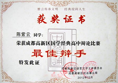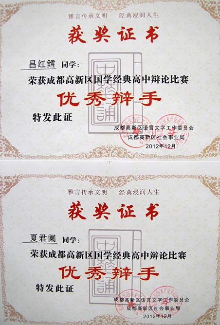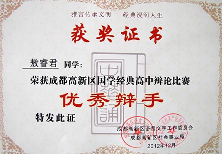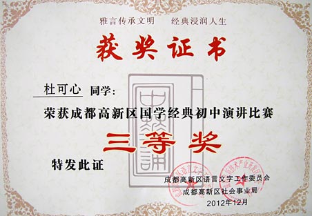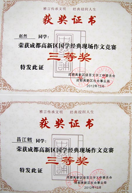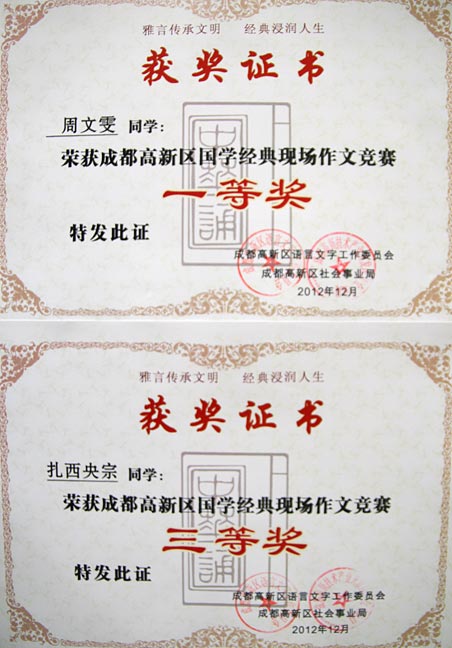 祝賀我校在成都高新區(qū)國學(xué)經(jīng)典系列比賽中取得佳績
