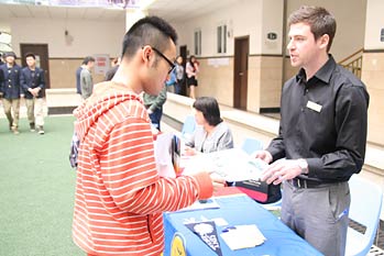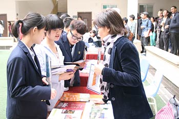 2013年3月12日上午,22所美國大學(xué)的招生官員應(yīng)邀到我校國際項目部開展大學(xué)咨詢會。我校國際項目部高中學(xué)生以及來自美視中美英才班、成都國際學(xué)校、樂盟國際學(xué)校的同學(xué)參加了本次大學(xué)咨詢會。同學(xué)們與招生官員面對面交談并問了許多他們感興趣的問題。我們相信,通過與美國大學(xué)代表的交談,同學(xué)們對這些大學(xué)有了進(jìn)一步的了解。