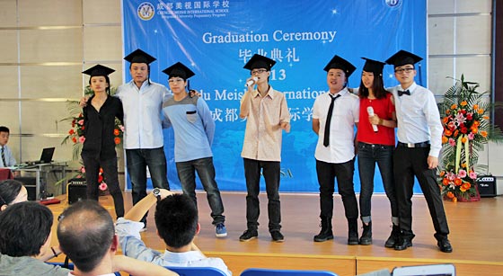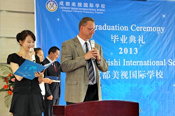 成都美視學(xué)校國際項(xiàng)目部于2013年5月31日舉辦國際項(xiàng)目部2013屆畢業(yè)生畢業(yè)典禮。畢業(yè)生家長以及學(xué)校教職員工、初高中同學(xué)們出席了本次畢業(yè)典禮。國際項(xiàng)目部校長劉建華先生致開幕辭,祝賀畢業(yè)生們圓滿完成學(xué)業(yè)。在本次畢業(yè)典禮上,大家欣賞了由同學(xué)們帶來的舞蹈、歌曲以及樂器演奏。同時(shí),觀看了由畢業(yè)生自制的電影短片。我們祝愿畢業(yè)生們前程似錦。