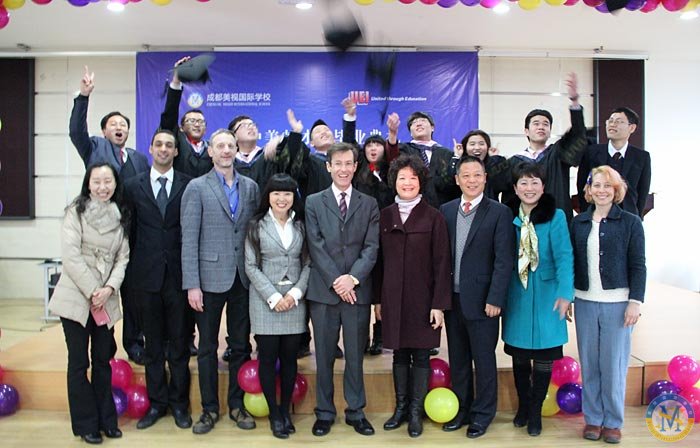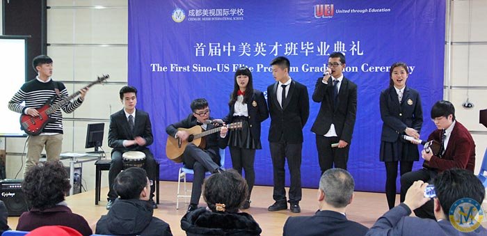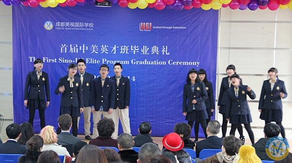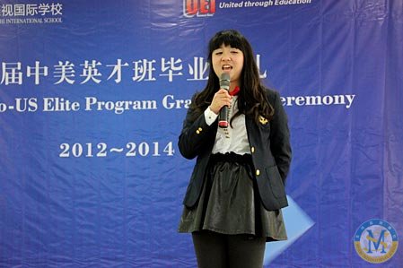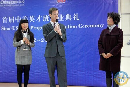 2014年1月10日美視-UEI 首屆中美英才班畢業(yè)典禮在美視校園隆重召開。在本次畢業(yè)典禮上,成都美視師一學(xué)校執(zhí)行董事陳頎女士,UEI首席執(zhí)行官Dan Plaut 先生,中學(xué)部校長徐德雄先生均發(fā)表了講話,表達(dá)了對本屆畢業(yè)生學(xué)業(yè)的肯定以及對他們所寄予的厚望。7名畢業(yè)生也發(fā)表了英語演講,他們流利的英語,地道的發(fā)音給在場嘉賓留下了深刻的印象。祝福我們的畢業(yè)生在未來的道路上一帆風(fēng)順。