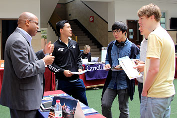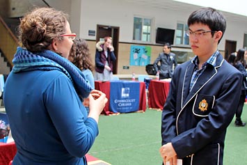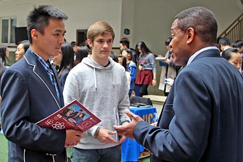 2014年3月26日,27所海外大學(xué)招生咨詢會(huì)在我校國(guó)際項(xiàng)目部舉行。海外大學(xué)代表在國(guó)際項(xiàng)目部禮堂為同學(xué)們做了精彩的招生宣講。我們還邀請(qǐng)了成都美國(guó)學(xué)校、成都國(guó)際學(xué)校、樂盟國(guó)際學(xué)校和美視中美英才班的同學(xué)們參加本次咨詢會(huì)。同學(xué)們現(xiàn)場(chǎng)填寫了報(bào)名表并領(lǐng)取了一些招生資料。通過同學(xué)們和家長(zhǎng)們與海外大學(xué)招生代表面對(duì)面交談,大家收獲頗豐,受益良多。