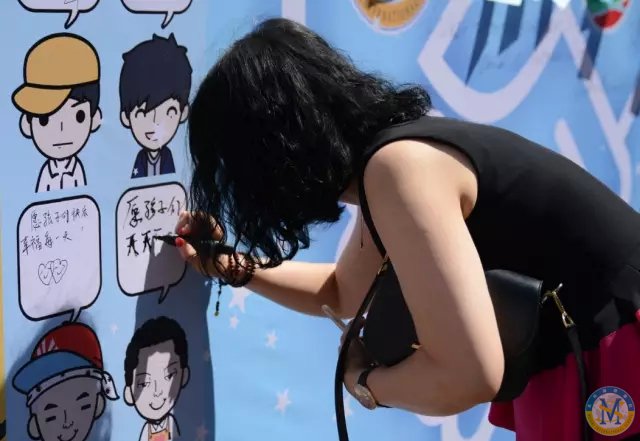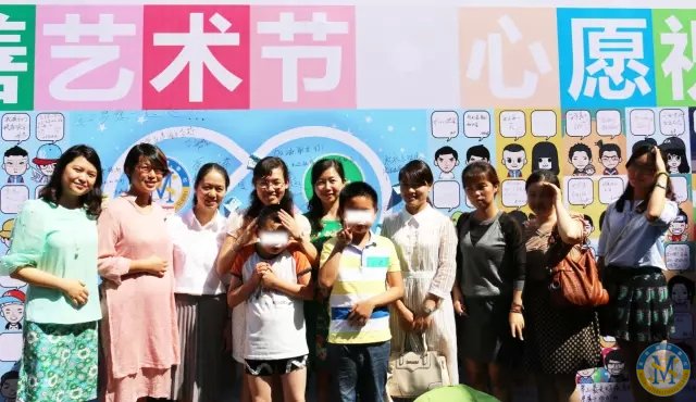 一大幅“臉萌祝福墻”吸引著來(lái)者的目光。MYP項(xiàng)目部全體師生為成都青羊區(qū)特殊教育中心的孩子們舉辦的慈善藝術(shù)節(jié)正待開(kāi)場(chǎng)。