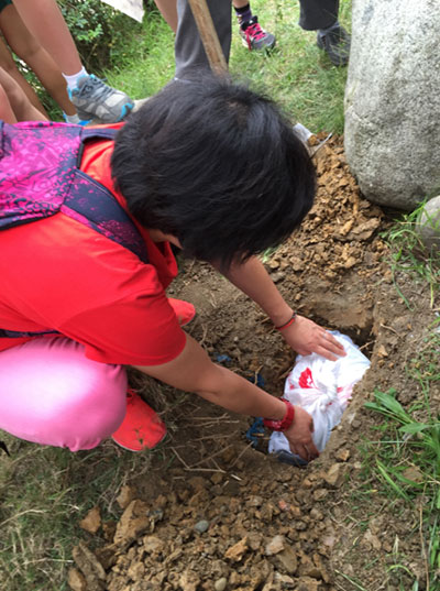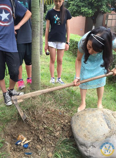時間一點一滴的過去,我們的夢想石被搬開了,夏日的汗水浸透了大家伙兒的衣襟,終于看見當年的大鐵盒。