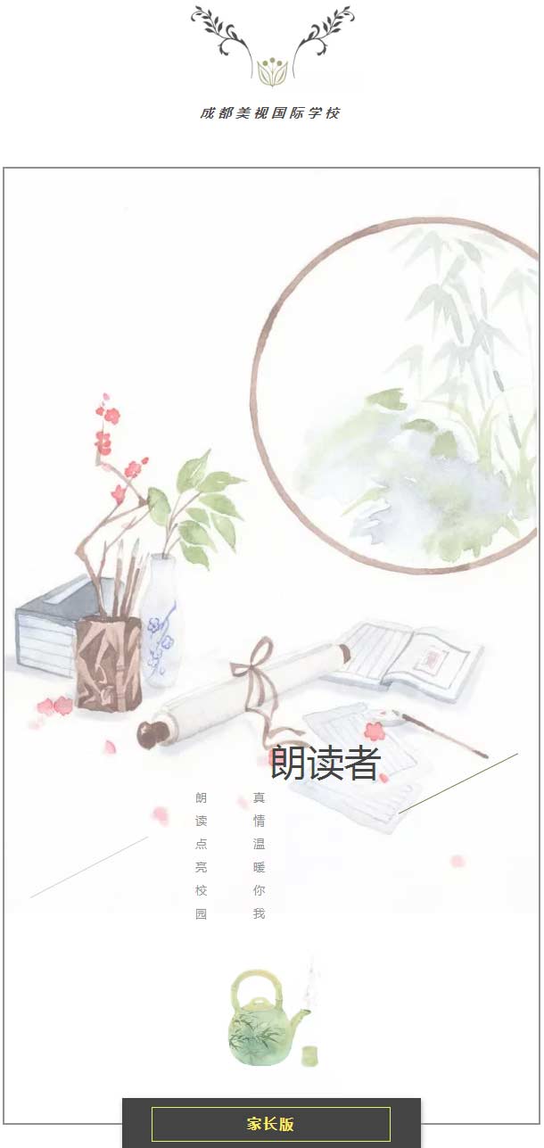 我校IB-MYP項(xiàng)目《美視朗讀者》第二期(家長(zhǎng)版)邀您品悟。