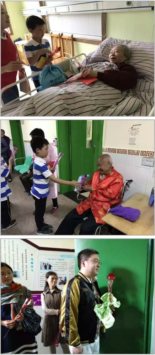 演出后,孩子們?cè)趮寢尩呐阃?,跟著爺爺奶奶走進(jìn)他們的房間,為每位老人送去了代表愛的“康乃馨”和親自選擇的愛心發(fā)梳作為小禮物,為老人們帶去暖暖的問候。