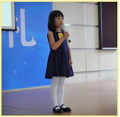 一年級二班的劉語萱小朋友代表“美寶”們發(fā)言。