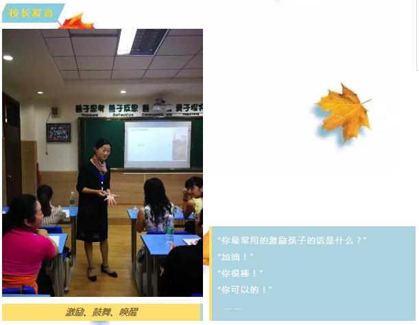 紀(jì)校長以“激勵(lì) 鼓舞 喚醒”為題表達(dá)了作為家長應(yīng)有的心態(tài)——欲速則不達(dá),見小利則大事不成。