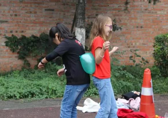 同學(xué)們需要兩兩組隊,在最短時間內(nèi)擠爆自己氣球的同時還要爭取阻止對方完成任務(wù)。