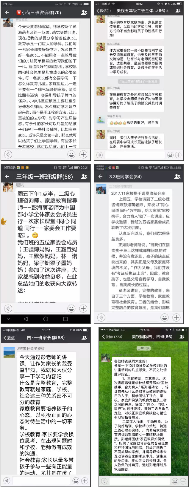 我們家校學(xué)習(xí)社區(qū)的每一位成員,不僅是學(xué)習(xí)者,也是反思者。活動結(jié)束后,我們將今天的收獲分享到了自己的班群。我們將和學(xué)校聯(lián)系得更緊密……