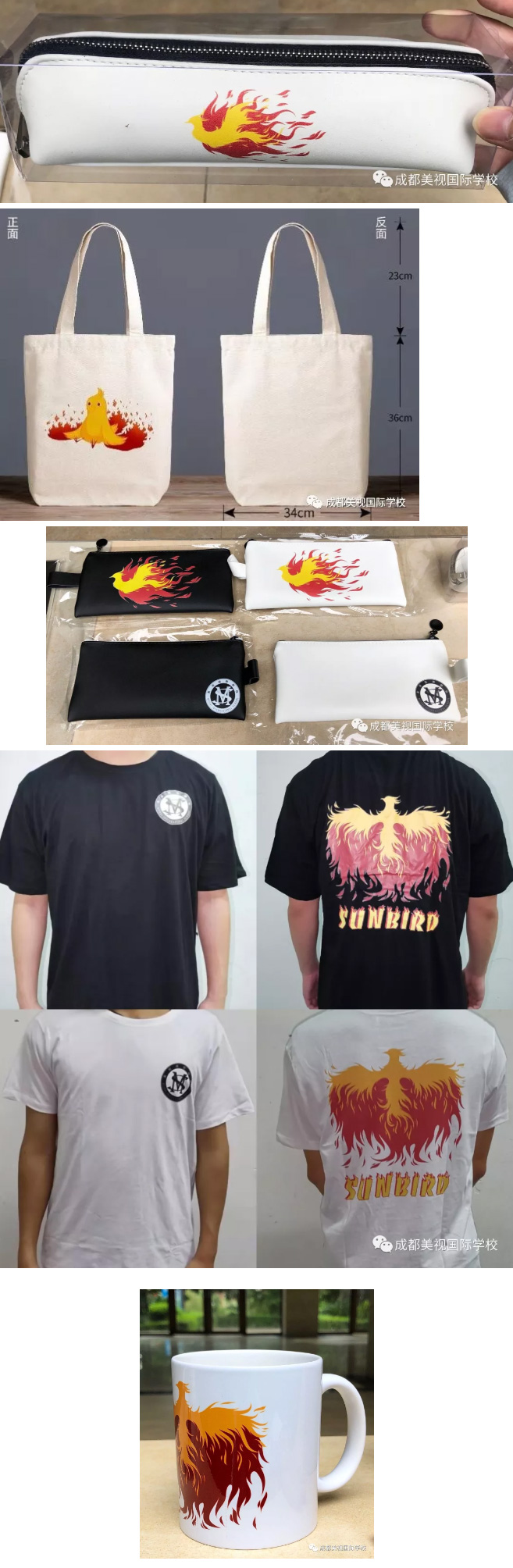 產(chǎn)品結(jié)合了2001年出土于四川成都金沙遺址的一張商代晚期的金箔——太陽神鳥,同時引用了學(xué)校多元的校園文化,logo的設(shè)計(jì)十分具有個性,并具有獨(dú)屬于流行文化的簡約,成功轉(zhuǎn)變傳統(tǒng)太陽神鳥的古板形象,使得這個本來讓人覺得刻板嚴(yán)肅的吉祥物變得現(xiàn)代化,并更容易讓學(xué)生們接受。馬克杯、體恤、帆布包以及鑰匙扣這些日常、更偏生活化的產(chǎn)品,也變得個性十足并具有流行元素在其中,十分酷炫獨(dú)特。而這也展現(xiàn)了我們校園文化中的自由獨(dú)特氣息。