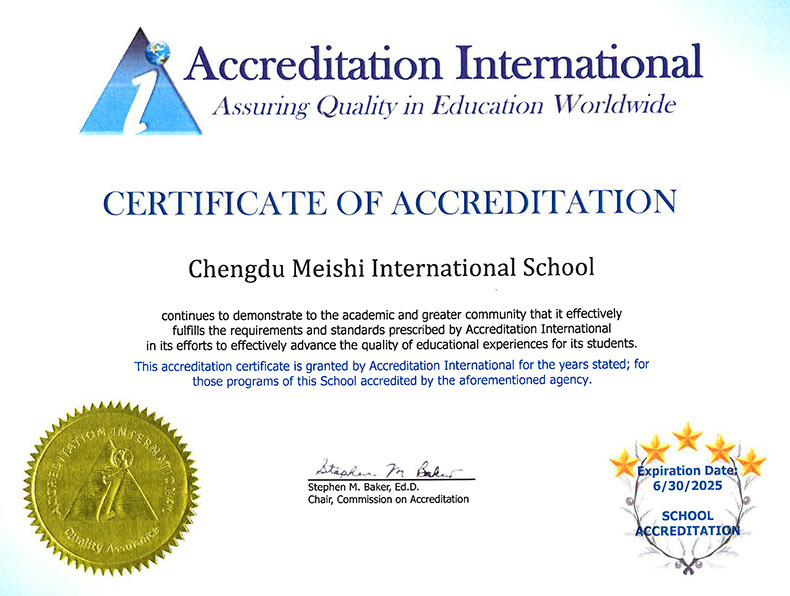 美視師一學校自2002年建校以來,以“優(yōu)質教育源于細節(jié)”為管理原則,推進全程小班教學創(chuàng)設濃郁的國際文化氛圍,探索中西教育優(yōu)勢互補、融合創(chuàng)新,取得了令人矚目的辦學成績。今年再次,以考核全優(yōu)的高水平順利通過這一嚴苛認證,AI認證證書,據(jù)悉,僅僅是評審文件,就有足足上百頁之多。至此,獲得IB(國際文憑)授權、NCA(美國北中部院校聯(lián)盟)、NCPSA(美國私立學校委員會)、Ai(國際認證)等世界先進教育促進組織認證,成為名副其實的世界認可的國際學校。
