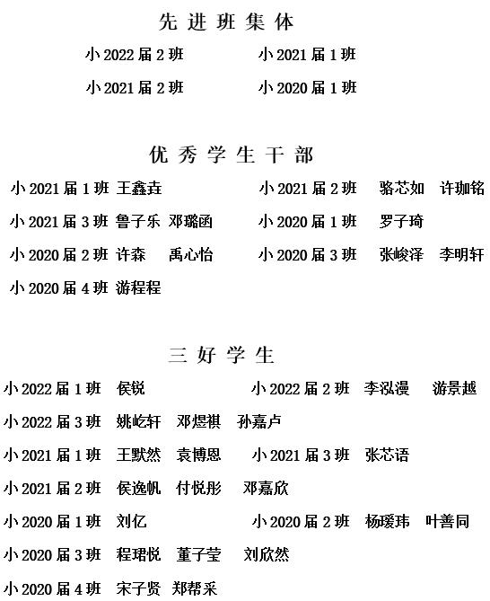 小學部2019—2020學年度 高新區(qū)先進班集體、三好學生、優(yōu)秀學生干部公示名單(第二榜)