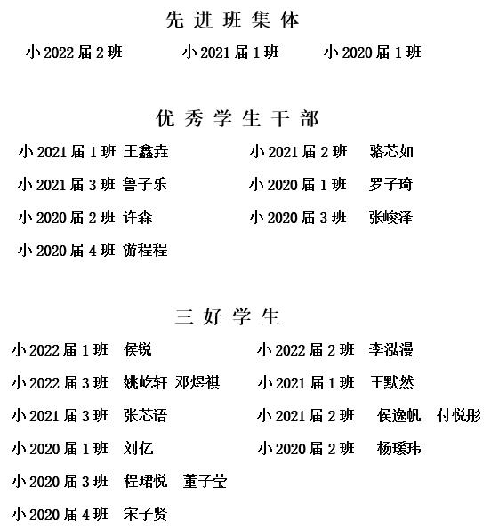 小學(xué)部2019—2020學(xué)年度高新區(qū)先進(jìn)班集體、三好學(xué)生、優(yōu)秀學(xué)生干部公示名單(第三榜)