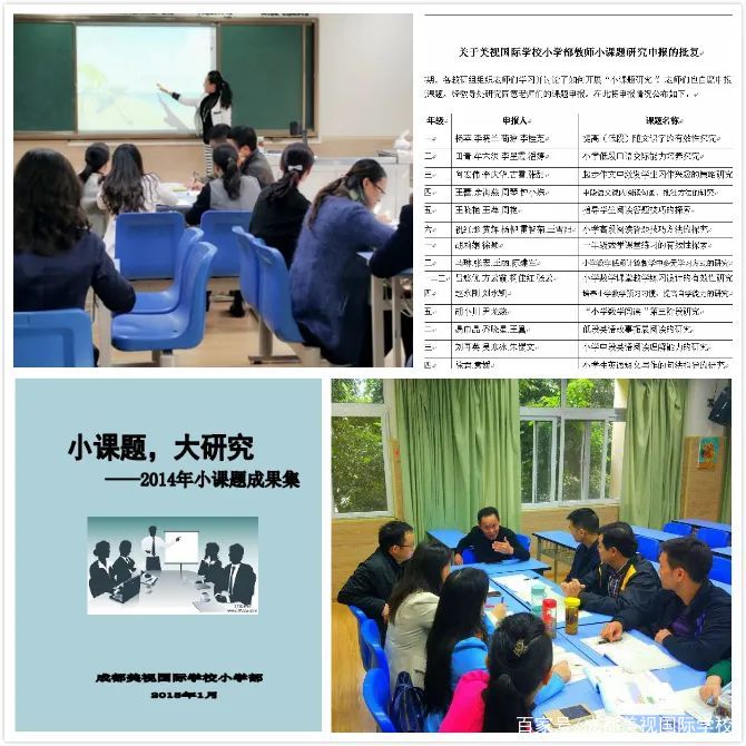 做小課題研究,便于資料的收集與內(nèi)容的撰寫,有利于把宏觀的決策轉(zhuǎn)化為微觀的課堂教學(xué)操作技術(shù)?!缎W(xué)中段群文閱讀教學(xué)研究》、《利用思維導(dǎo)圖引導(dǎo)進(jìn)行高段英語段落寫作的研究》、《小學(xué)數(shù)學(xué)教材的內(nèi)容選擇與呈現(xiàn)方式的研究》……圍繞著亟待解決的問題,我們思考著、實(shí)踐著,把自己的感悟撰寫成一篇篇教學(xué)論文、案例、隨筆。