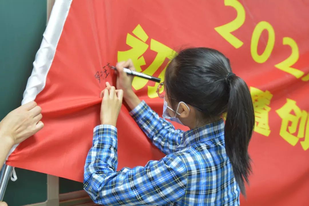 接下來,楊校長為兩個(gè)班分別進(jìn)行了授旗儀式,隨后兩個(gè)班的學(xué)生在各自的旗幟上留下了簽名。相信這兩面活力四射、寓意深遠(yuǎn)的旗幟,必將在每位同學(xué)心中留下深刻的印象,引導(dǎo)大家在接下來的學(xué)習(xí)生活中努力去做最好的自己。
