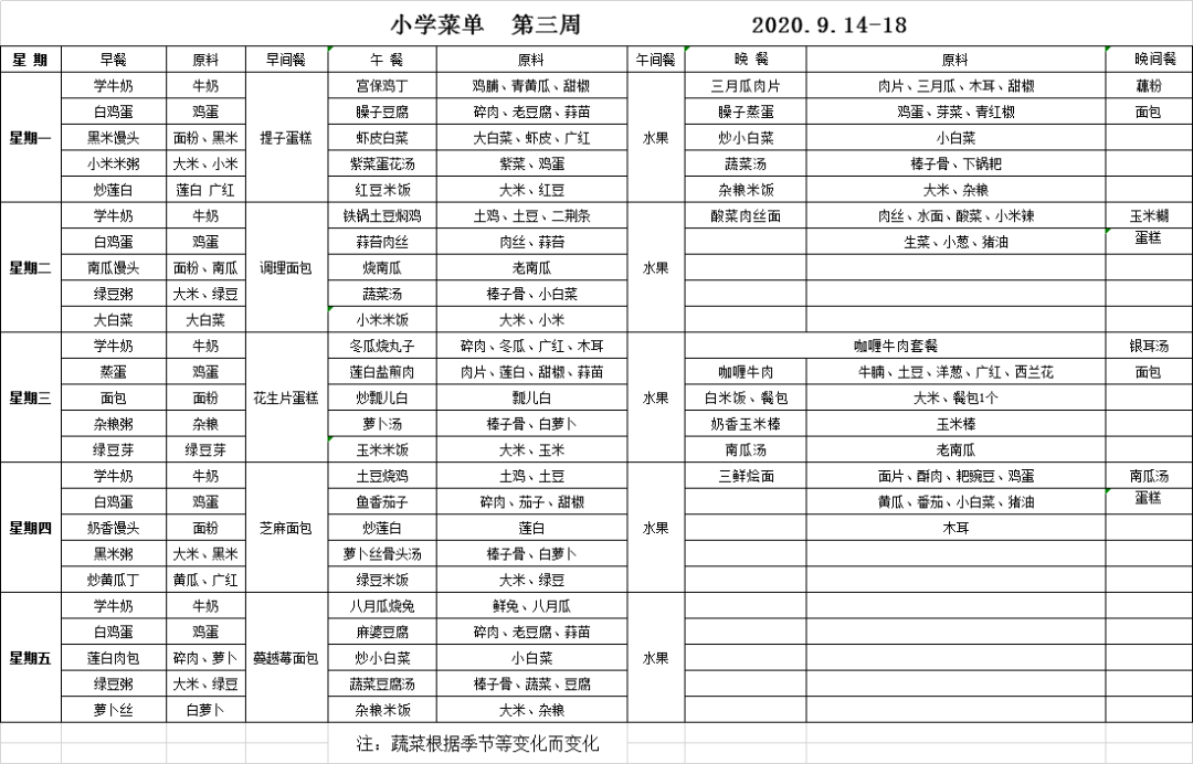 小學(xué)9月第三周菜單